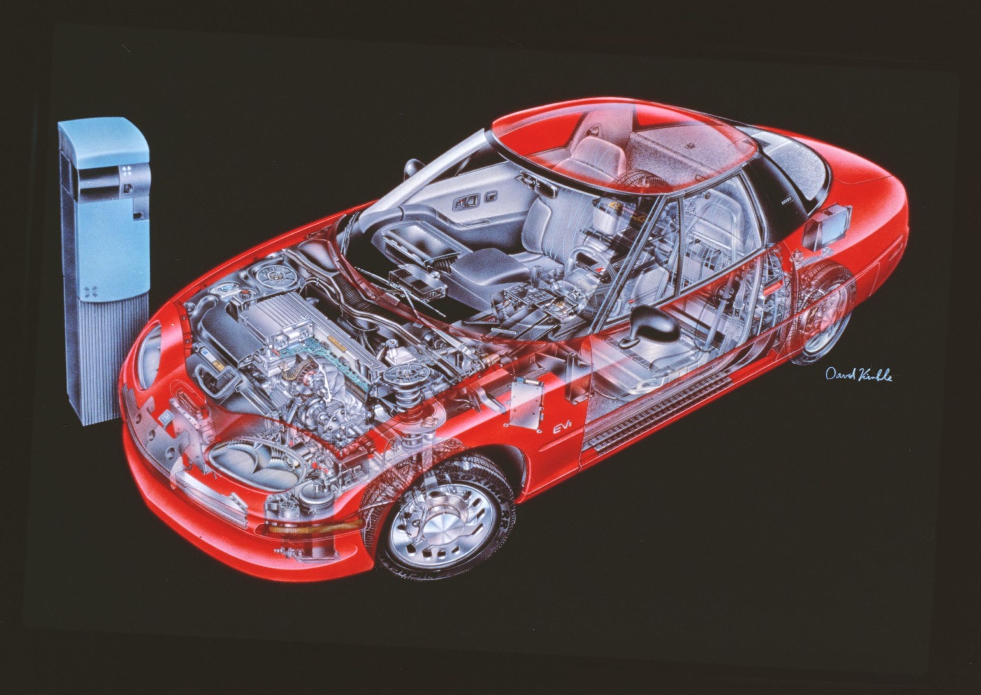 • Aluminum space frame chassis: Rather than using a conventional steel structure, EV1 engineers chose a unique aluminum space frame to save weight, helping to increase range. Today’s Chevrolet Corvette uses a similar design.