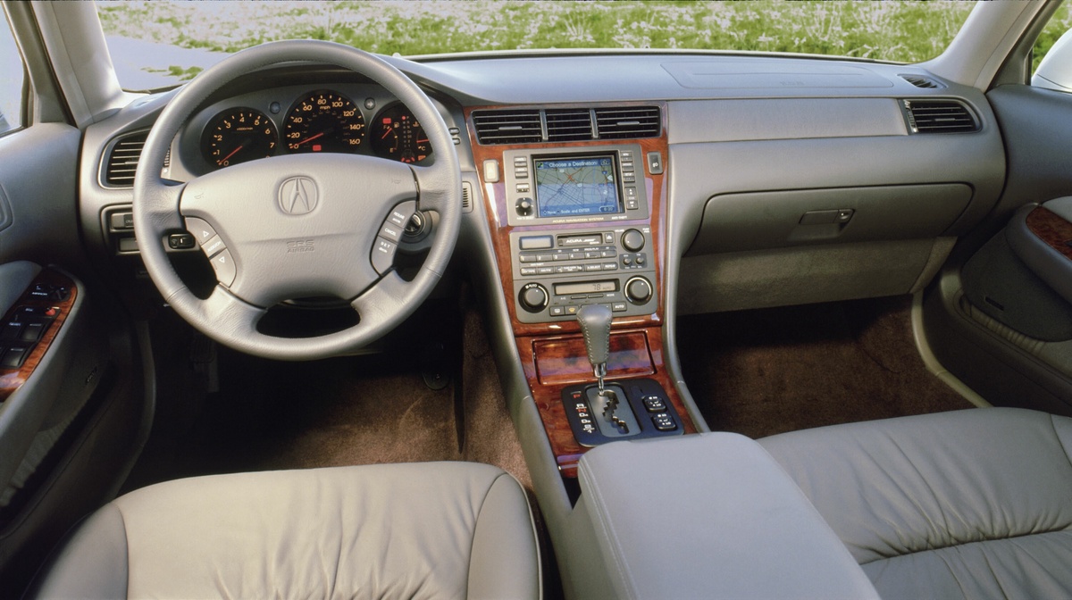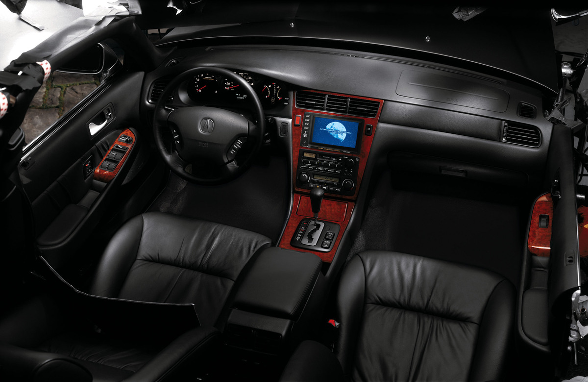 The RL’s elegant cabin environment boasts abundant interior room, hand-selected leather-trimmed seating, an 8-way power adjustable driver’s seat, which for 2004 adds power lumbar support. Also for 2004, the RL receives several trim enhancements including a redesigned center console, meter panel and steering wheel, brushed metal and chrome interior accents and a wood-pattern shifter knob. Both the instrument panel and the navigation system screen are trimmed in premium burled camphor wood.
