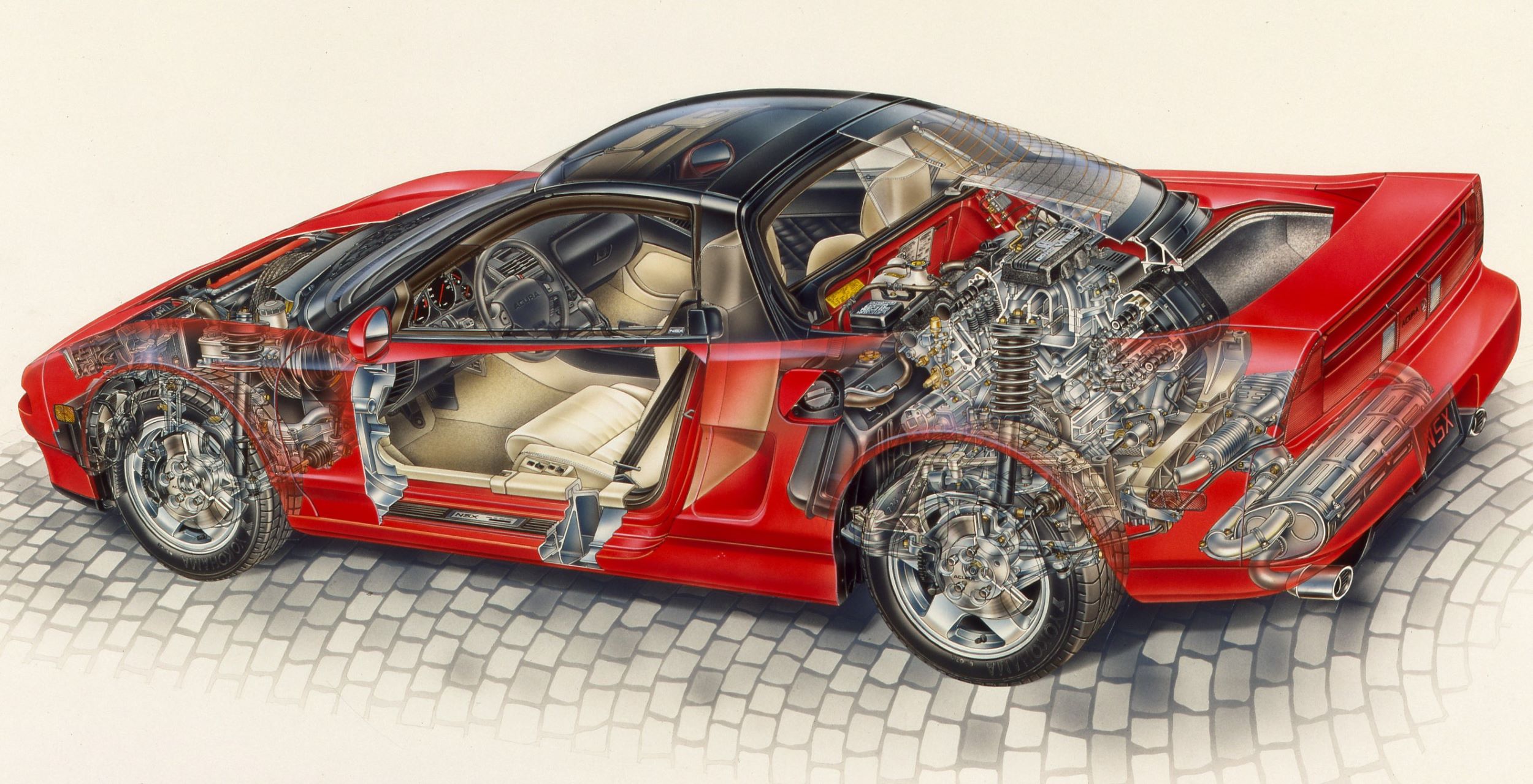 The main difference between the NSX and a Formula One suspension, of course, is that while a Formula One car makes no allowances for ride quality, good bump absorption or generous wheel travel, the suspension on the NSX had to be designed to have those properties as well.