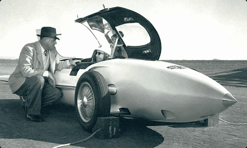 Every surface of the vehicle was refined in the California Institute of Technology wind tunnel, one of the first examples of the application of aerodynamic theories to automobile vehicle design. The negative angle of attack of the wings and the 6-square-foot area of the tail fin were all optimized through this ground-breaking work.
