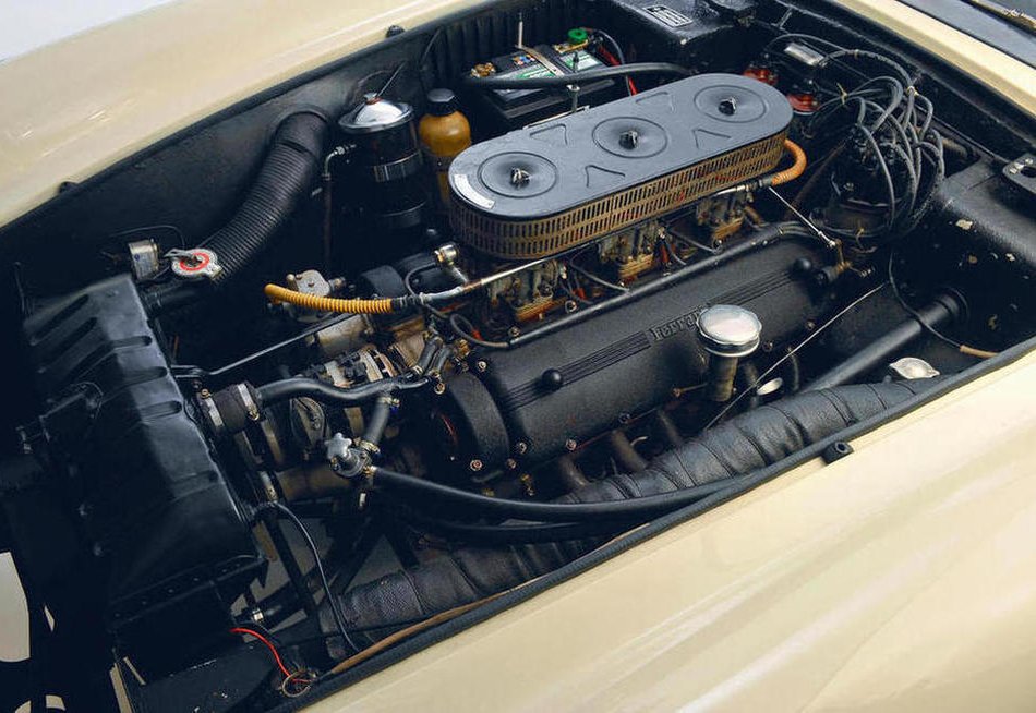 The late series production ‘LWB’ examples and early ’SWB’ series cars were fitted with the outside spark plug 3-litre V12 type 128 DF and 128 F engines, with twin coil and distributor ignition systems and larger carburettors. The later ’SWB’ models were fitted with further developments of the 3-litre V12 engine, which were given the factory reference numbers 168 and then 168/61. These were also outside spark plug variants, with a twin coil and distributor ignition system layout. Within these general parameters certain engines received special treatment, with different camshafts, valve sizes, and carburettor set-ups, to boost the power output for competition use. The transmission was as that fitted to the concurrent ‘LWB’ and ’SWB’ berlinetta series.
