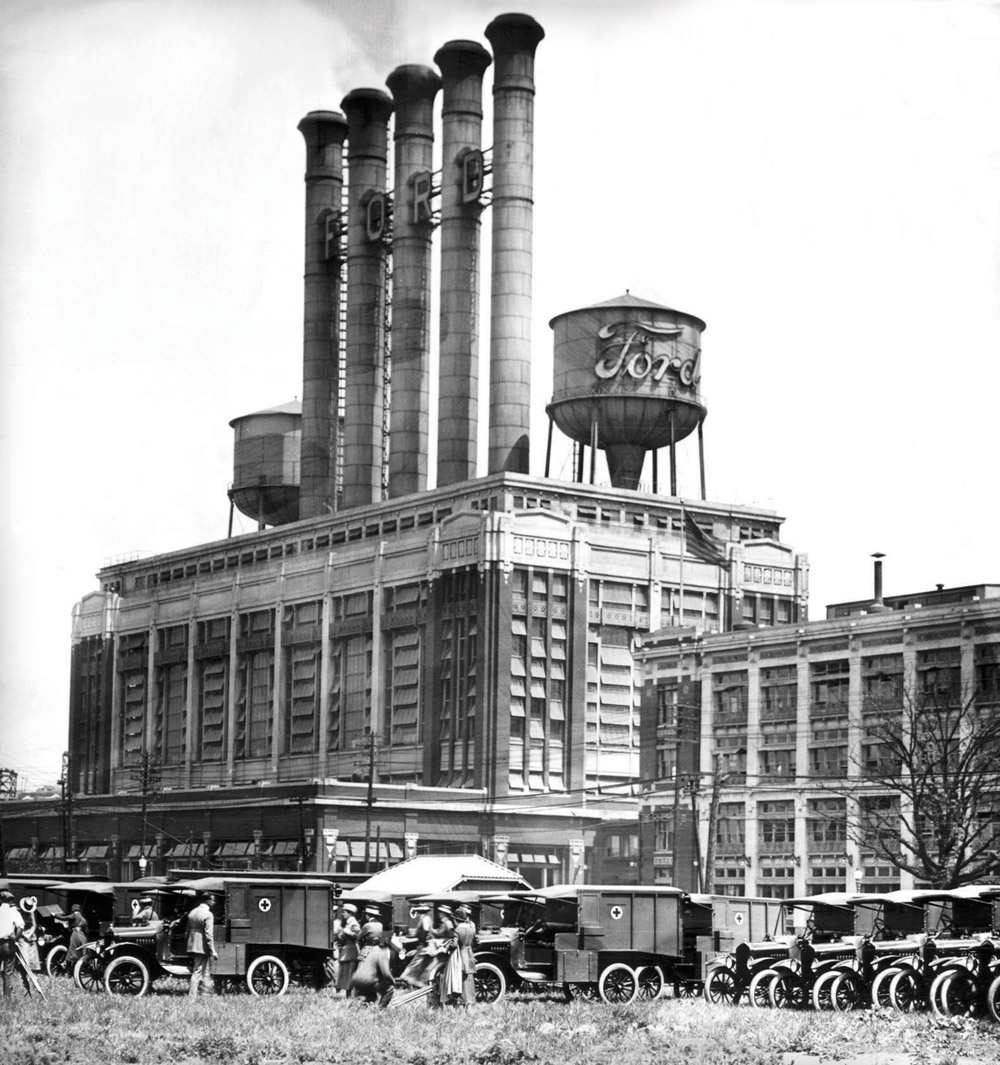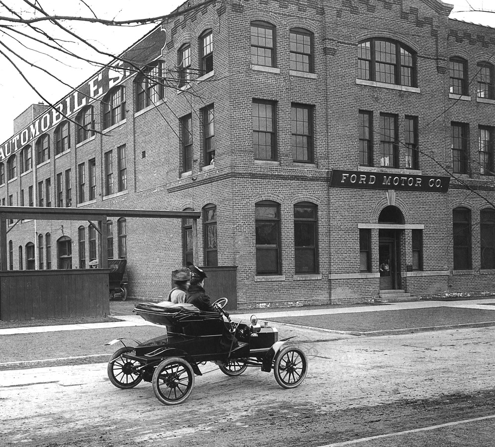 Ford’s Highland Park Plant was also known as the ‘Crystal Palace’ because of the vast expanse of windows. It is the site of the first automotive moving assembly line. From the collections of The Henry Ford and Ford Motor Company.