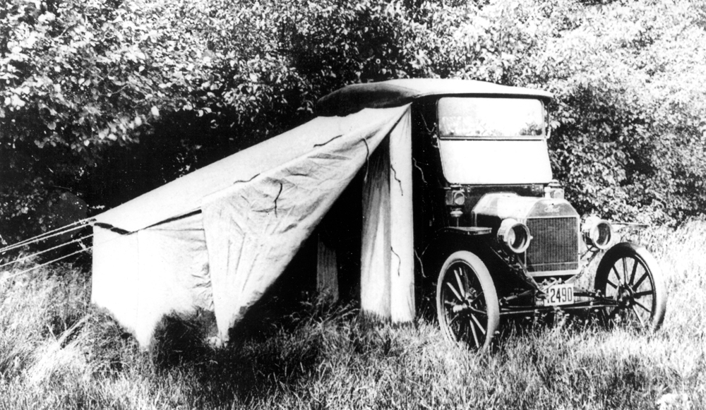 Model T Runabout with tent attatched: The initial Model T’s came epuipped with only the barest necessities, but soon they were modified to facilitate camping enabling enthusiasts more mobility. From the collections of The Henry Ford and Ford Motor Company. (04/21/08)