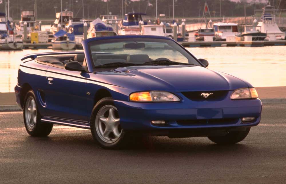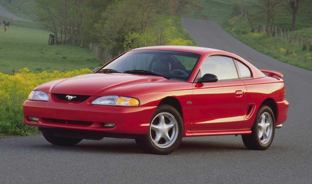 1998: Output of the Mustang GT’s 4.6-liter V-8 is increased to 225 hp.