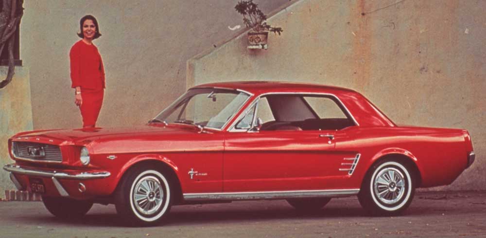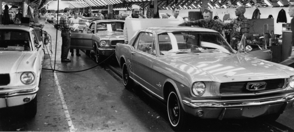 1966. A Mustang hardtop coupe comes down the final assembly line at DAP.