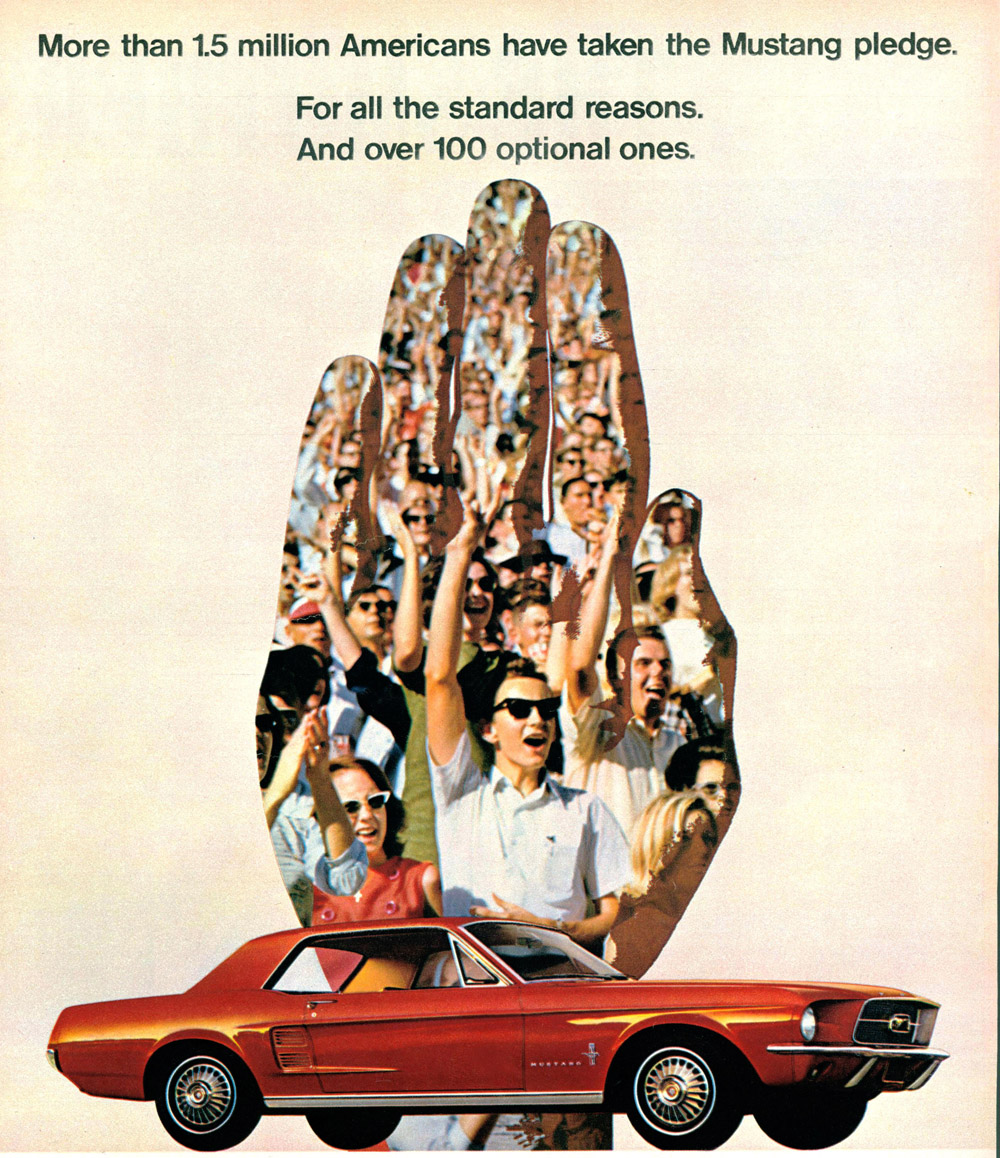 Gallery / MustangMustang Gallery (1967) 1967 Ford Mustang Coupe. 1967 Ford Mustang GT 390. 1967 Ford Mustang Shelby GT 500. 1967 Ford Mustang Shelby GT 500. Ford Mustang 1967 1967 Ford Mustang T-5. Photo Credit: This 1967 Mustang recreation was built entirely from licensed Ford restoration parts and Ford racing reproduction components. (06/07/2010) 1967 Ford Mustang advertisement. 1967 Ford Mustang advertisement. 1967 Ford Mustang advertisement. (low resolution image) 1967 Ford Mustang advertisement. 1967 Ford Mustang GT sportsroof Share this: Click to email a link to a friend (Opens in new window) Email Click to share on LinkedIn (Opens in new window) LinkedIn Click to share on Tumblr (Opens in new window) Tumblr More Click to share on Facebook (Opens in new window) Facebook Click to share on Reddit (Opens in new window) Reddit Click to share on Pinterest (Opens in new window) Pinterest Click to share on Pocket (Opens in new window) Pocket Click to share on WhatsApp (Opens in new window) WhatsApp Click to share on Mastodon (Opens in new window) Mastodon Click to share on X (Opens in new window) X