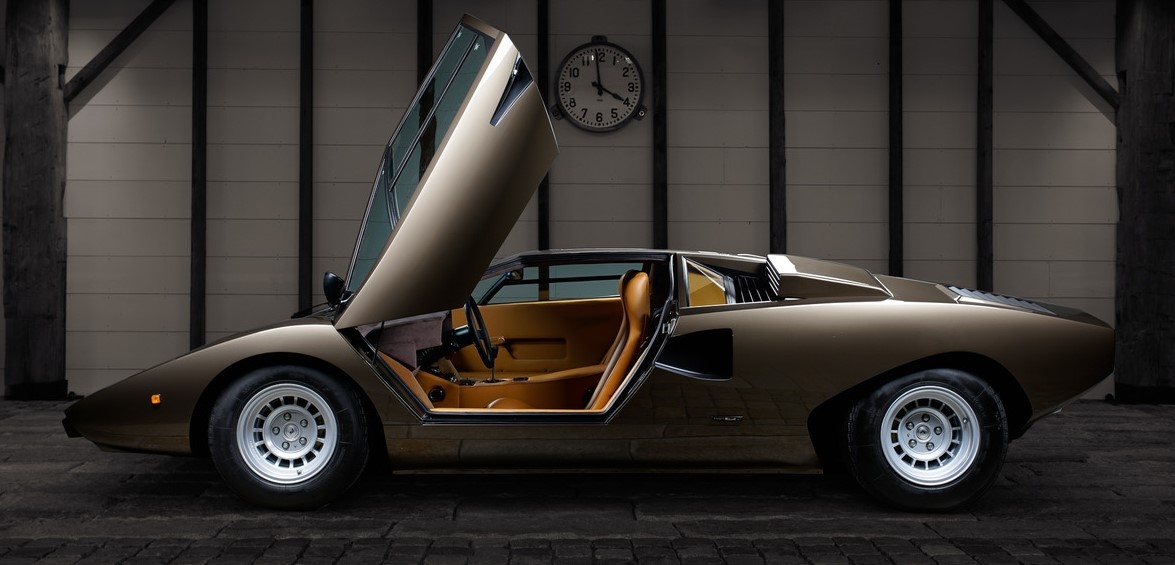 Together with the Miura, the Countach represented the backbone of the Lamborghini legend. Once again the team, Marcello Gandini and Nuccio Bertone, put their signature on a unique line that remains unchanged today: its 12 cylinders mounted lengthwise (Longitudinale Posteriore – hence LP) and the wedge-shaped body only 1.07 m tall with scissor doors, redefined the segment of sports cars, leaving enthusiasts speechless. The LP 400 of the first series, presented here, is still in great demand today because in this version the clear language of the shapes without larger mudguards and rear spoilers is even more explicit.
