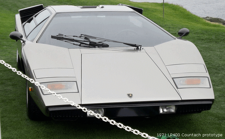 The production model of the Countach was codenamed LP 400 because its V12 – positioned longitudinally behind the cockpit – was increased to an ideal displacement of 4 litres (3929 cc). This model debuted at the 1973 Geneva Motor Show.