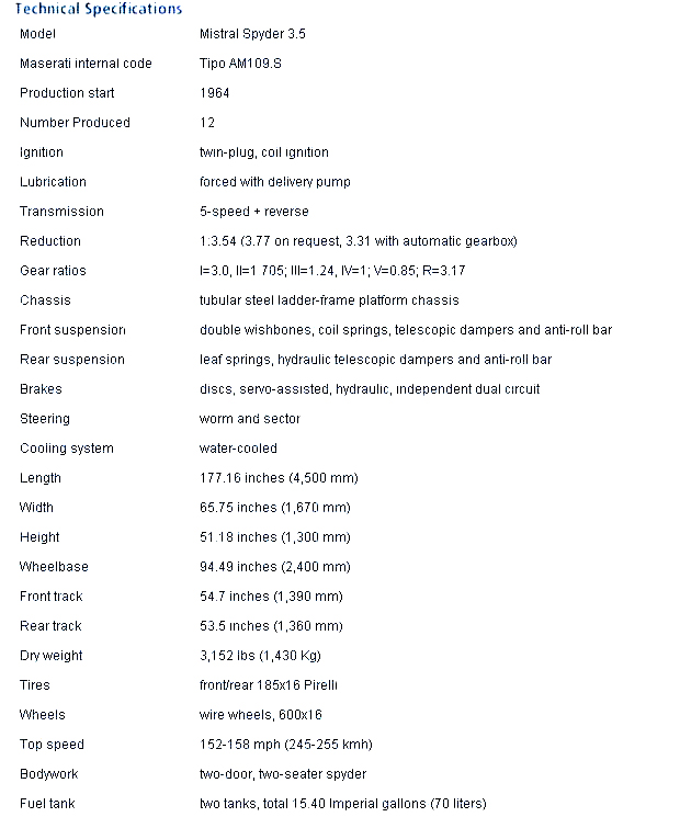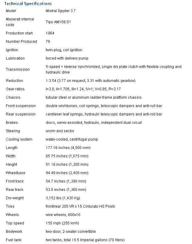Maserati Mistral Spider 3.7 (1964 to 1970)
