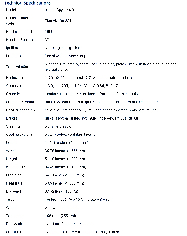 Maserati Mistral Spider 4.0 (1966 to 1970)