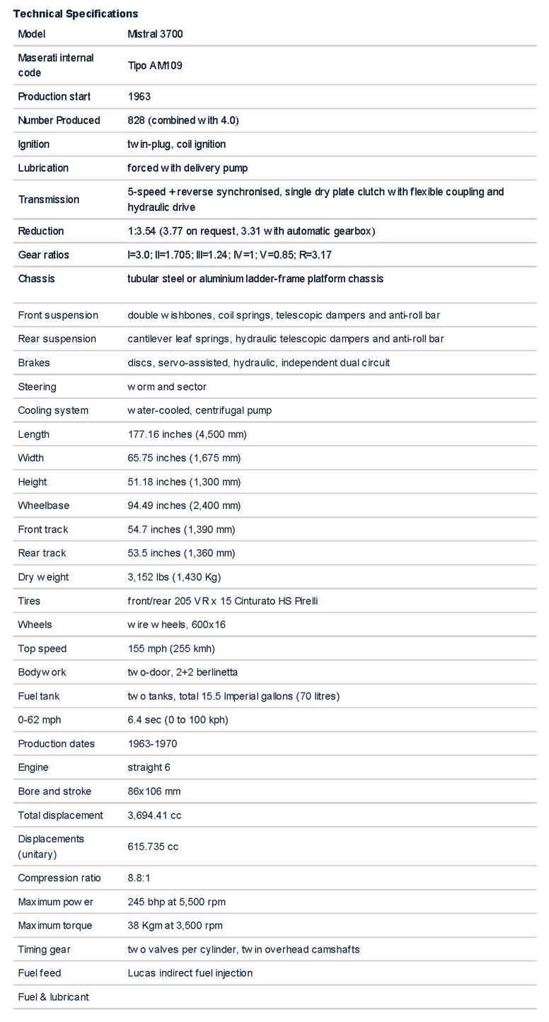 Maserati Mistral 3.7 (1963 to 1970)