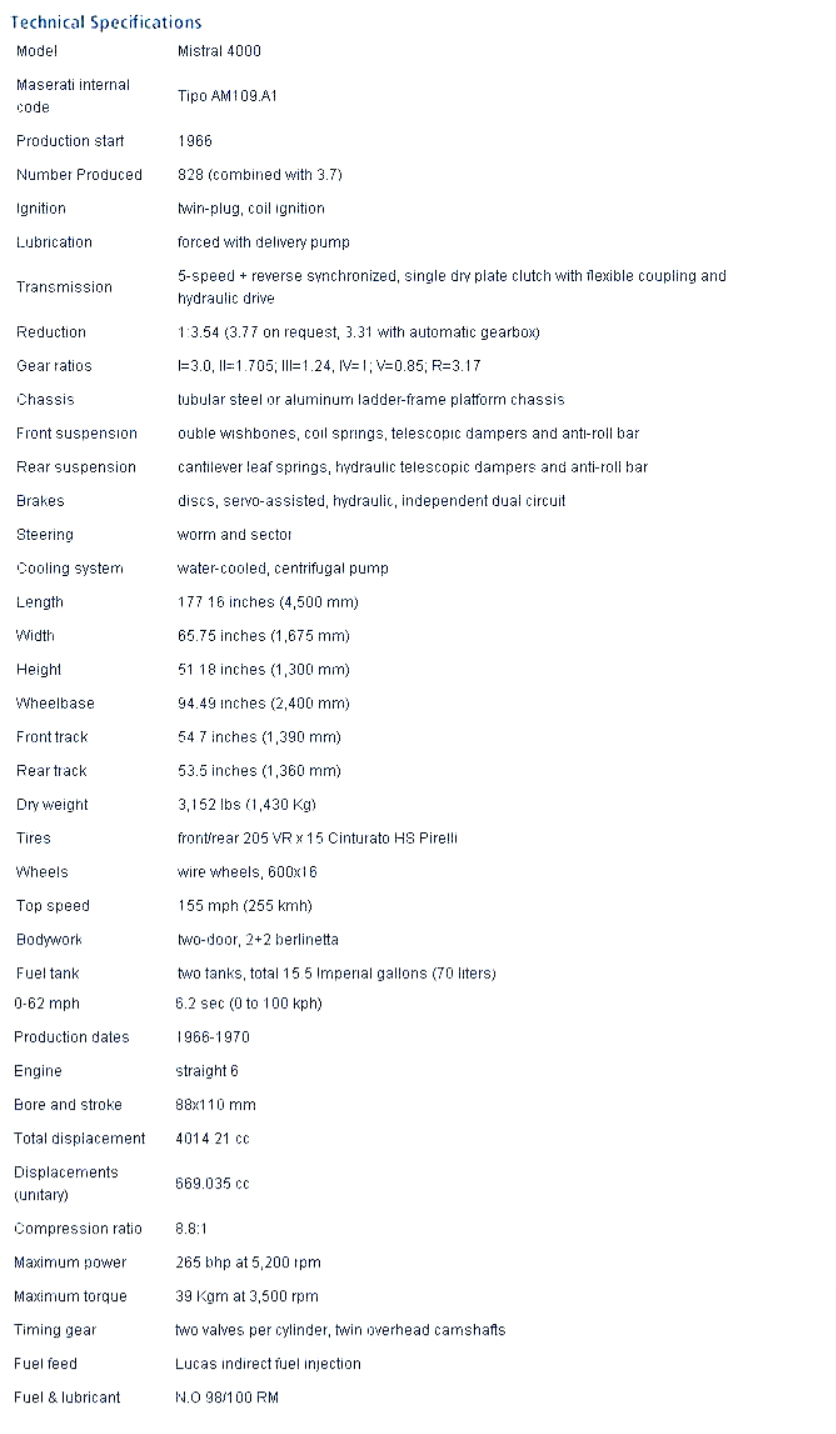Maserati Mistral 4.0 (1966 to 1970)