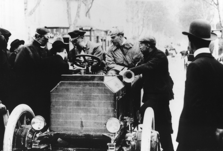 When a large part of the Daimler factory in Cannstatt went up in flames on 10 June 1903, Jellinek again became active: as the three 90 hp Mercedes for the Gordon Bennett Race also had been lost to the fire, he started thinking about who could make a car available to him for the event, and the type of car it should be: a 60 hp model would be best since they had made a good showing in all previous races. He found one owned by the American Gray Dinsmore. The Belgian racing driver Camille Jenatzy piloted the car to victory in the race, which was held in Ireland. With that a German car entered its name in the list of winners for the first time – and Germany gained the honour of staging the race, which enjoyed an international reputation comparable with today’s Formula One events, in 1904.