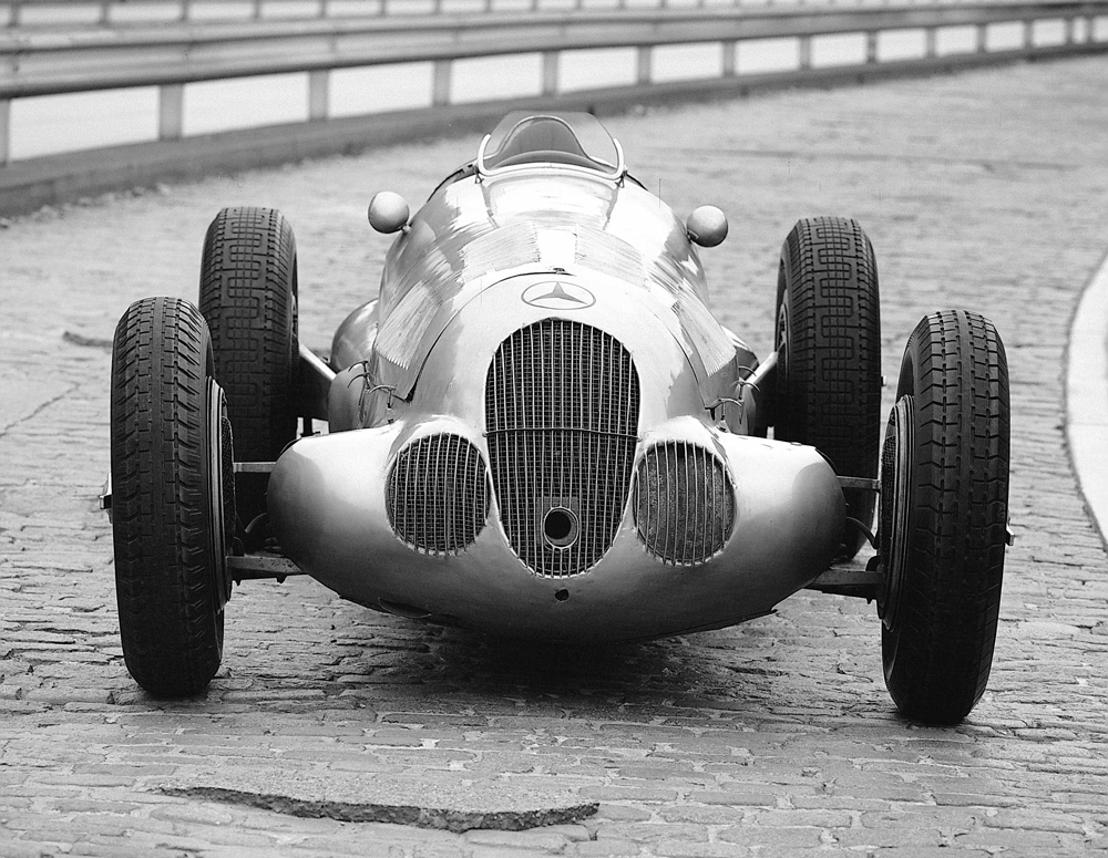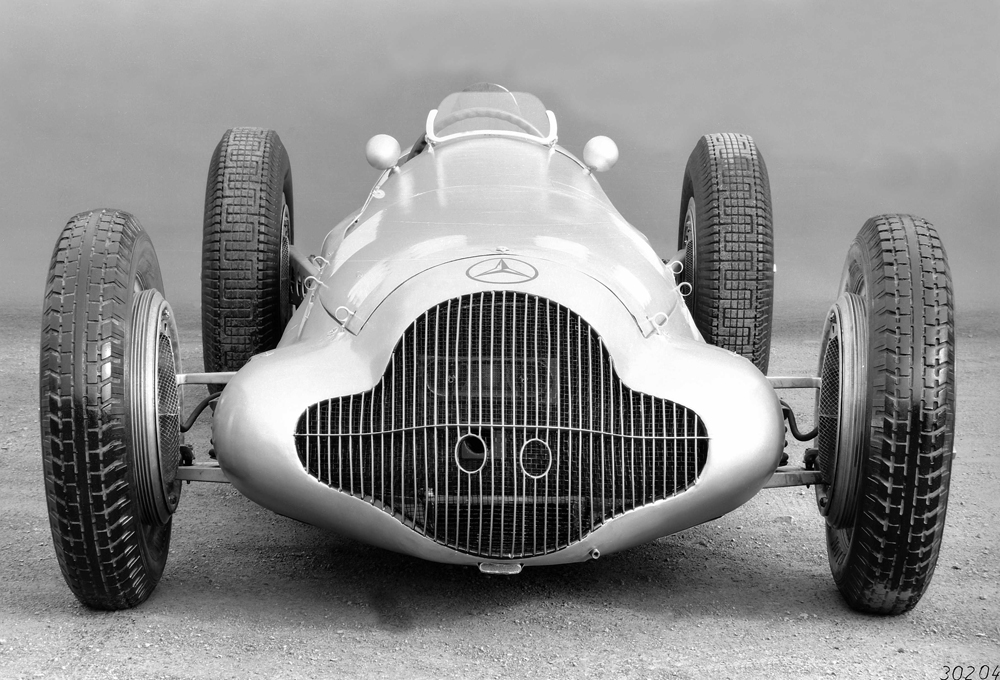 Mercedes-Benz W 25 formula racing car with supercharger, 1934 version. W 125, W 154, and W 165 follow between then and 1939