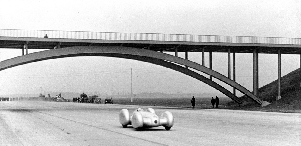 As speeds increased, the silver racers found that the available tracks no longer met their needs. Whereas in 1934 a smooth, straight stretch of concrete near the Hungarian city of Györ, not far from Budapest, or the Avus circuit in Berlin, had been just about adequate, by 1936 the favoured length of road had become the Frankfurt–Darmstadt motorway (these days the German A 5 Autobahn/federal motorway). Finally, for the last record-breaking attempts before the outbreak of the Second World War, an unusually wide section of the new Dessau–Bitterfeld motorway was used.