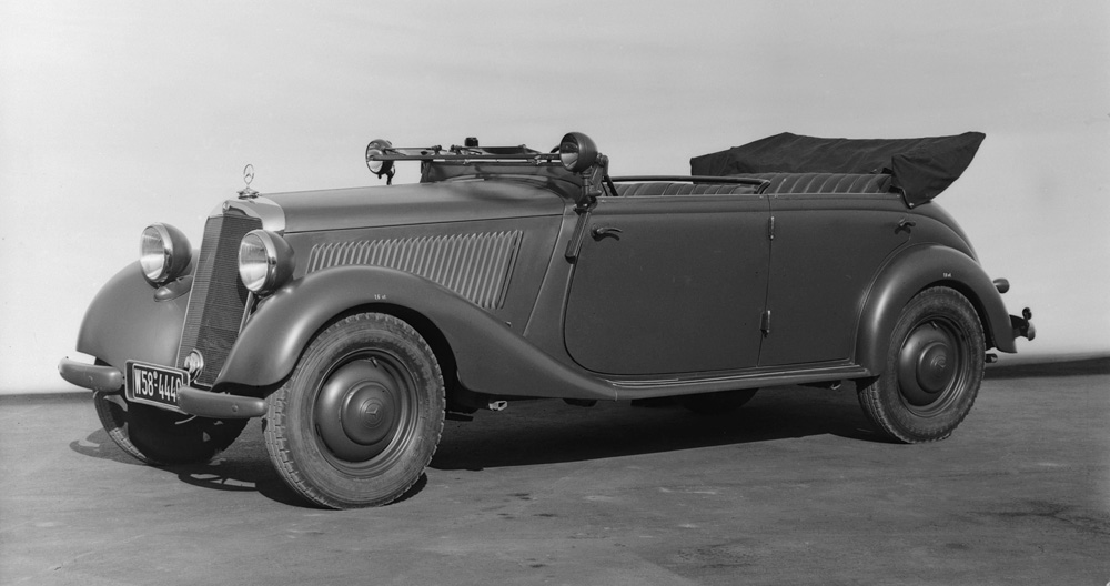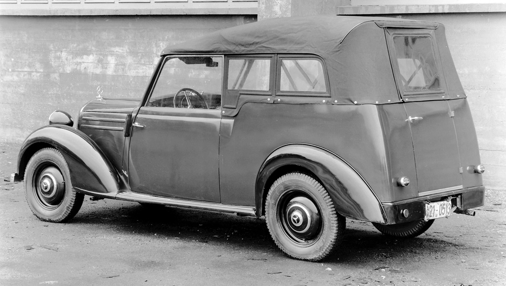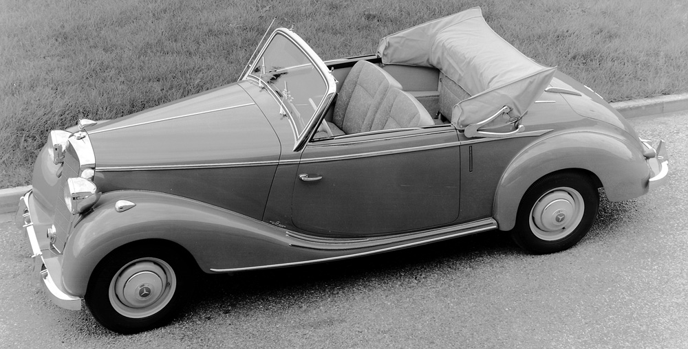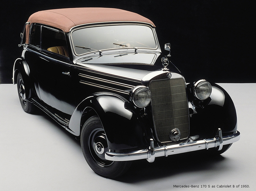 The 170 S introduced at the same time as the 170 D was the new top model of the Mercedes-Benz car range. It was designed as a successor to the 170 model, but in styling and concept it made stylistic references to the pre-war 230 model (W 153). With its spacious all-steel body, additional comfort, and technical enhancements – which ranged from a more powerful engine to improved front axle – the 170 S model was the top-of-the-line model at Mercedes-Benz until 1951. In addition to the saloon, Stuttgart offered a two-seater cabriolet A and a four-seater cabriolet B.