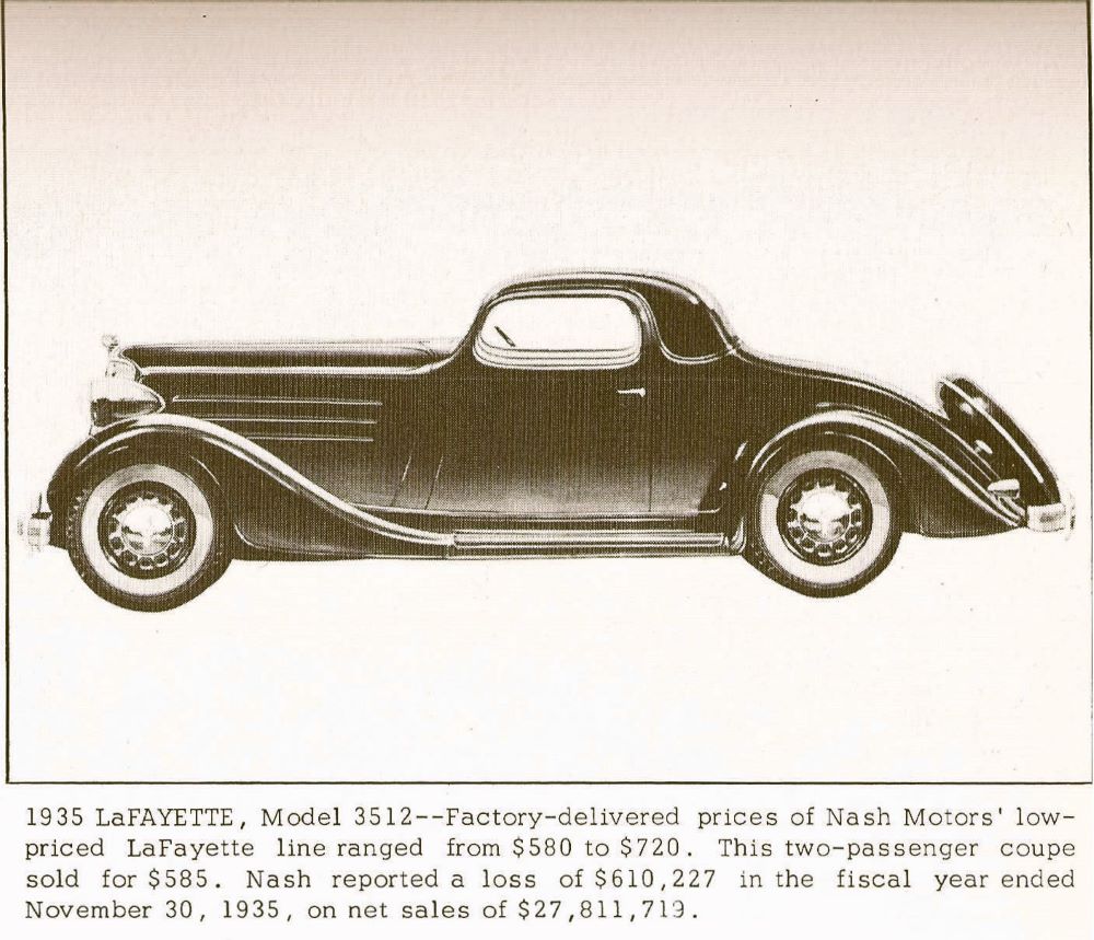 In 1934, Nash re-introduced the LaFayette name, this time for a line of smaller, less expensive cars. In 1935, Nash introduced a series known as the “Nash 400” to fill the perceived price gap between the LaFayette and the Nash. By 1937, it was determined that this perceived gap wasn’t so important after all, and that Nash Motors was marketing too many models. The LaFayette and the Nash 400 were combined into a single model called the Nash LaFayette 400 for 1937, and the LaFayette ceased to be regarded as a separate make of car. For 1938, this became simply the Nash LaFayette, and the LaFayette line continued as Nash’s lowest-priced offering through 1940
