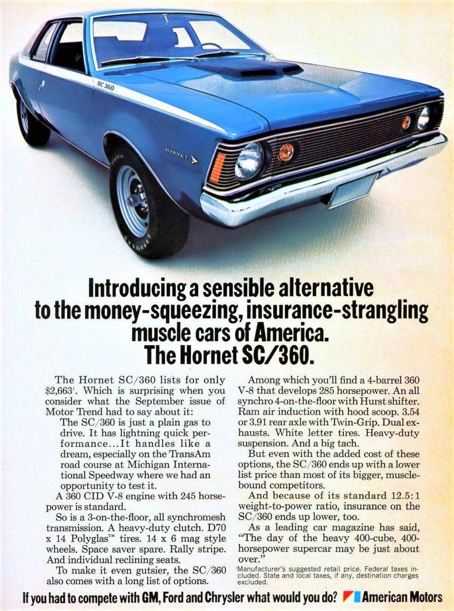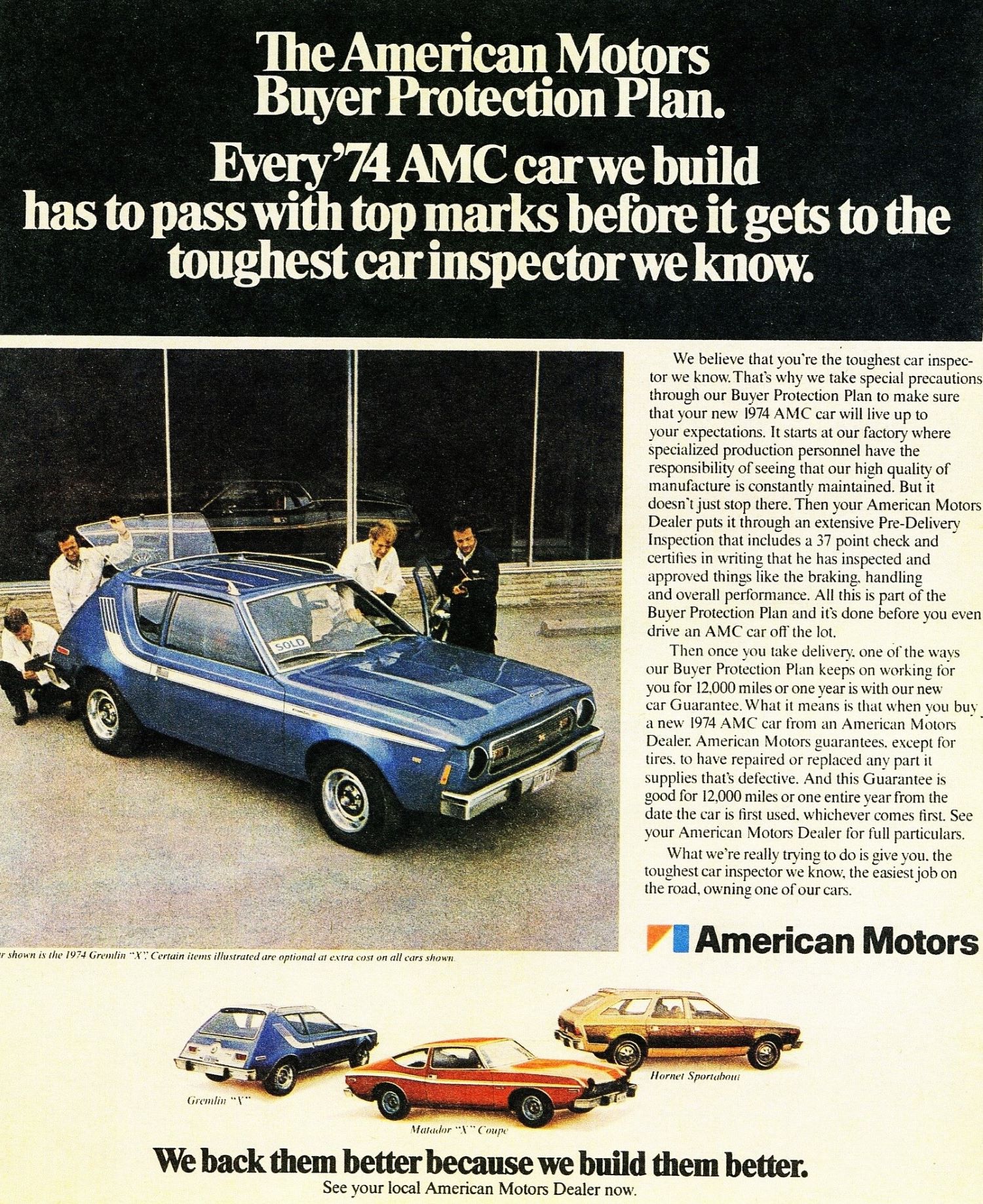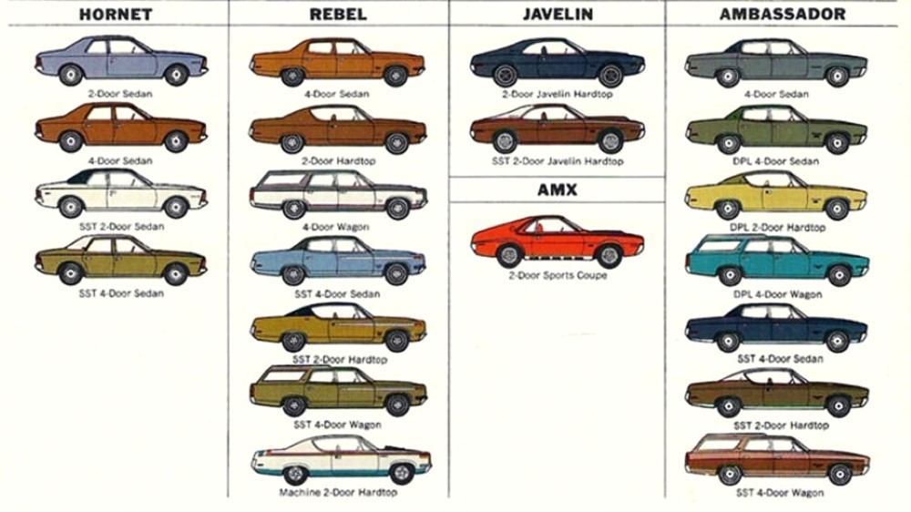 In 1970, AMC consolidated all passenger cars under one distinct brand identity and debuted the Hornet range of compact cars. The Hornet and the later Gremlin shared platforms. The Gremlin subcompact, sold more than 670,000 units from 1970–1978. The Hornet became AMC’s best-selling passenger car since the Rambler Classic, with more than 860,000 units sold by the time production ended in 1977. The new mid-sized AMC Matador replaced the Rebel in 1971 and in 1974, The Matador model line included a sedan, station wagon and two-door hardtop. The full-sized Ambassador was discontinued as AMC’s flagship line after the 1974 model year.