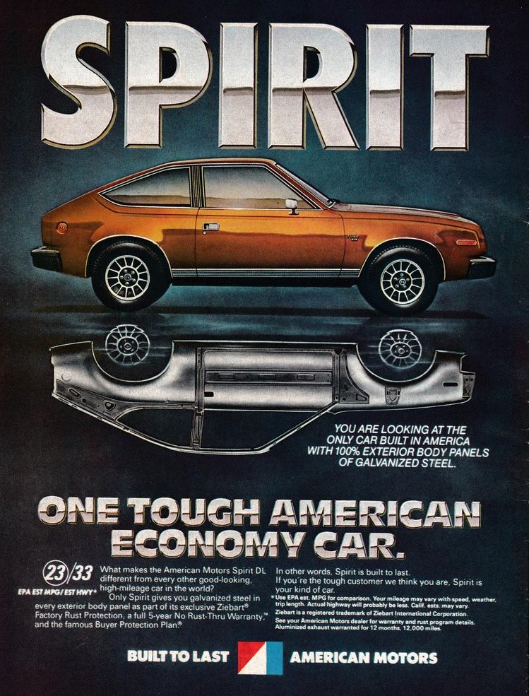 In August 1979, for the 1980 model year, AMC introduced new four-wheel drive versions of the Spirit and Concord, calling the collective line the AMC Eagle. Featuring an innovative full-time four-wheel drive system. In 1980, all AMC cars received a new rust-proofing process called Ziebart Factory Rust Protection that included a deep-dip bath in epoxy-based primer. While the two-wheel drive Spirit and Concord were both discontinued after 1983. Introduced in 1983, the Alliance was a front-wheel drive Renault 9 compact car restyled for the American market produced in Wisconsin. The car was badged as a Renault and some cars carried AMC badges. It was available as a sedan with two or four doors and later as a convertible. The hatchback, introduced in 1984 and badged as the Renault Encore.