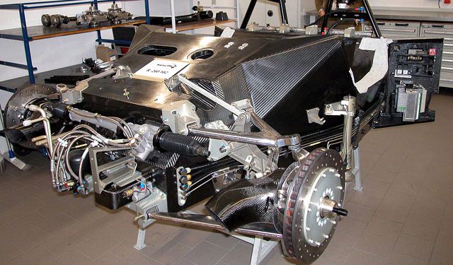 - Monocoque carbon fibre with integrated steel roll bars, leather steering wheel with airbag, passenger airbag, air-conditioning, audio system, adjustable pedals