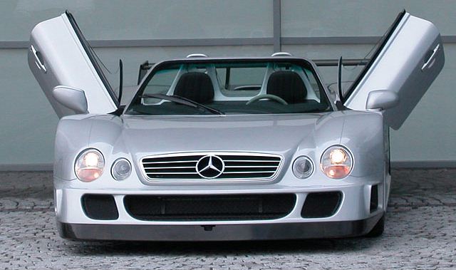 After the completion of the 20 original CLK GTRs, AMG’s specialist group H.W.A., who had assisted in the construction of the CLK GTRs, began construction of a roadster version of the CLK GTR. Built either by modifying an existing CLK GTR or by building a new car from spare chassis and parts, these cars were modified with the removal of their roofs as well as a reconstruction of their engine covers. Also the rearwing was replaced by a separate black wing, close to the one on the race CLK-GTR. Further the Roadster can be recognized by its different grille, which had a large star in it instead of a small version above it. Two rollbars integrating the cockpit headrests were used not only for structural integrity, but also rollover protection. A total of six CLK GTR Roadsters were built by the company.