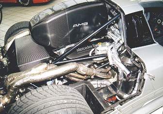 Ilmor Engineering provided enhancements to the engine, increasing displacement from 5.9 liters to 6.8. This increase in displacement coupled with the removal of a racing air restrictor allowed for 720 bhp (537 kW) and torque to 572 lb·ft (776 N·m). Mercedes-AMG claimed a 0-60 mph acceleration time of 3.1 seconds and a top speed of 215 mph (346 km/h).